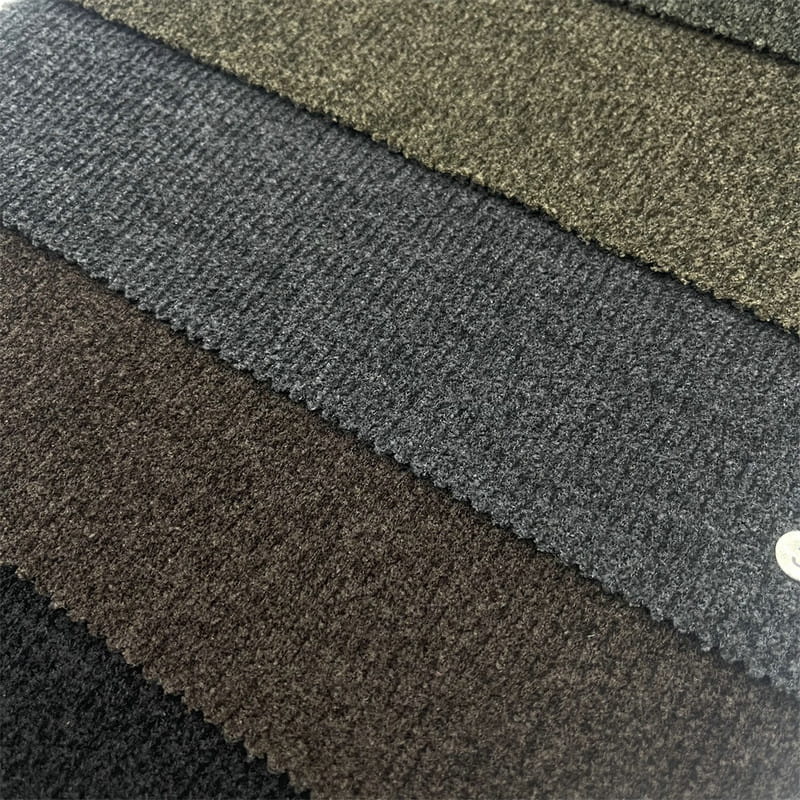 Este tejido es una chenilla jacquard diseñada para prendas de invierno masculinas, identificada como artículo AT21009. Está construido con una composición 100% poliéster y tiene un peso superficial de 720 g por metro. La estructura de la tela incorpora un patrón de jacquard con grietas de pincel, creando un efecto visual texturizado. La construcción de chenilla, combinada con el gramaje especificado, contribuye a la sensación al tacto y a la caída del tejido. Estos parámetros técnicos dan como resultado un material con opacidad y sustancia inherentes, lo que lo hace aplicable para prendas exteriores y otras prendas para clima frío donde se requieren estas características.