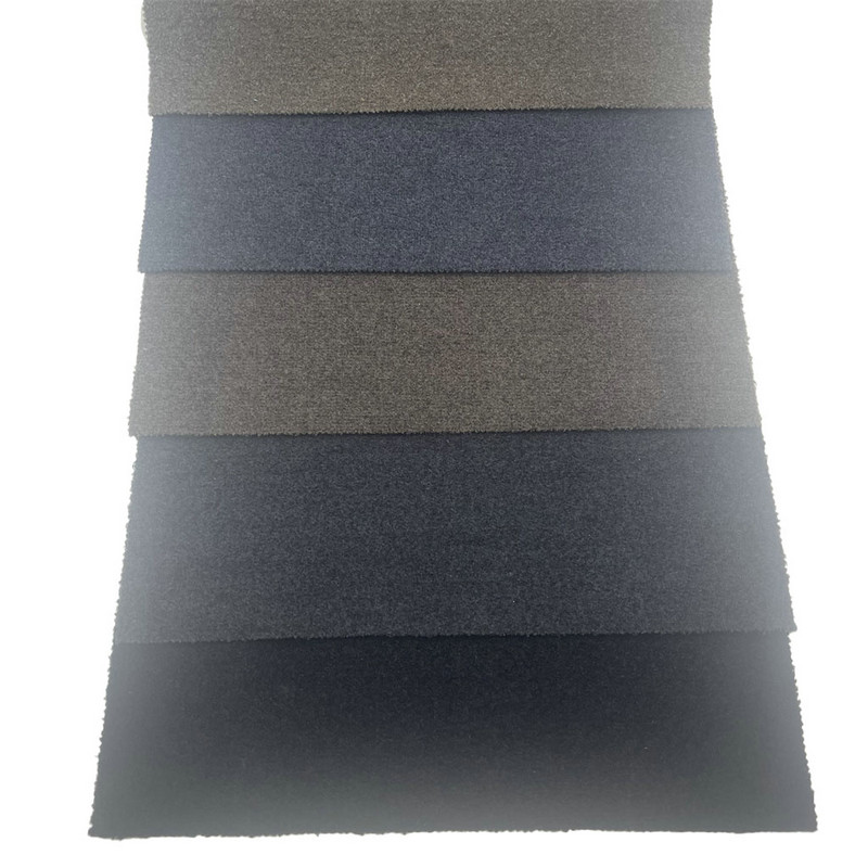 Este tejido, artículo A23010, es un tejido liso fabricado con una mezcla de 84% poliéster y 16% nailon. Con una masa por unidad de área de 780 g/m3, el material posee un peso y una densidad sustanciales. La superficie ha sido sometida a un proceso de cepillado que crea una capa de fibra elevada, alterando las características táctiles del tejido. Esta técnica de acabado mejora la textura de la superficie del textil al tiempo que contribuye a sus propiedades aislantes. La combinación de poliéster y nailon proporciona estabilidad dimensional e integridad estructural al tejido base. Estas especificaciones técnicas hacen que este tejido cepillado sea aplicable para la fabricación de abrigos donde se requieren estas características funcionales.