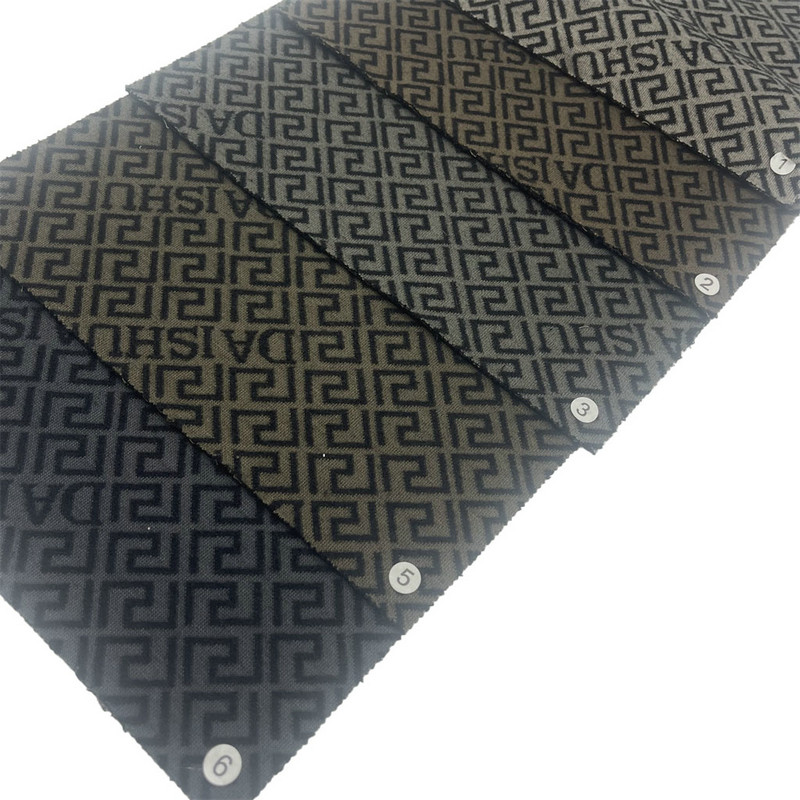 Este tejido, denominado artículo T24067A, es un tejido jacquard elaborado a partir de una mezcla de 84% poliéster y 16% nailon. Con una masa por unidad de área de 850 g/m3, el material exhibe una densidad sustancial e integridad estructural. La superficie presenta un patrón jacquard repetido que se integra directamente en la construcción de la tela durante el proceso de tejido. Esta tela está configurada para adaptarse a la personalización del logotipo dentro de la repetición del patrón, lo que permite la incorporación de identificadores de marca directamente en la estructura textil. La composición de fibra especificada contribuye a la estabilidad dimensional y la durabilidad del tejido, lo que lo hace aplicable para diversas aplicaciones de prendas de vestir donde se requieren estas propiedades técnicas.