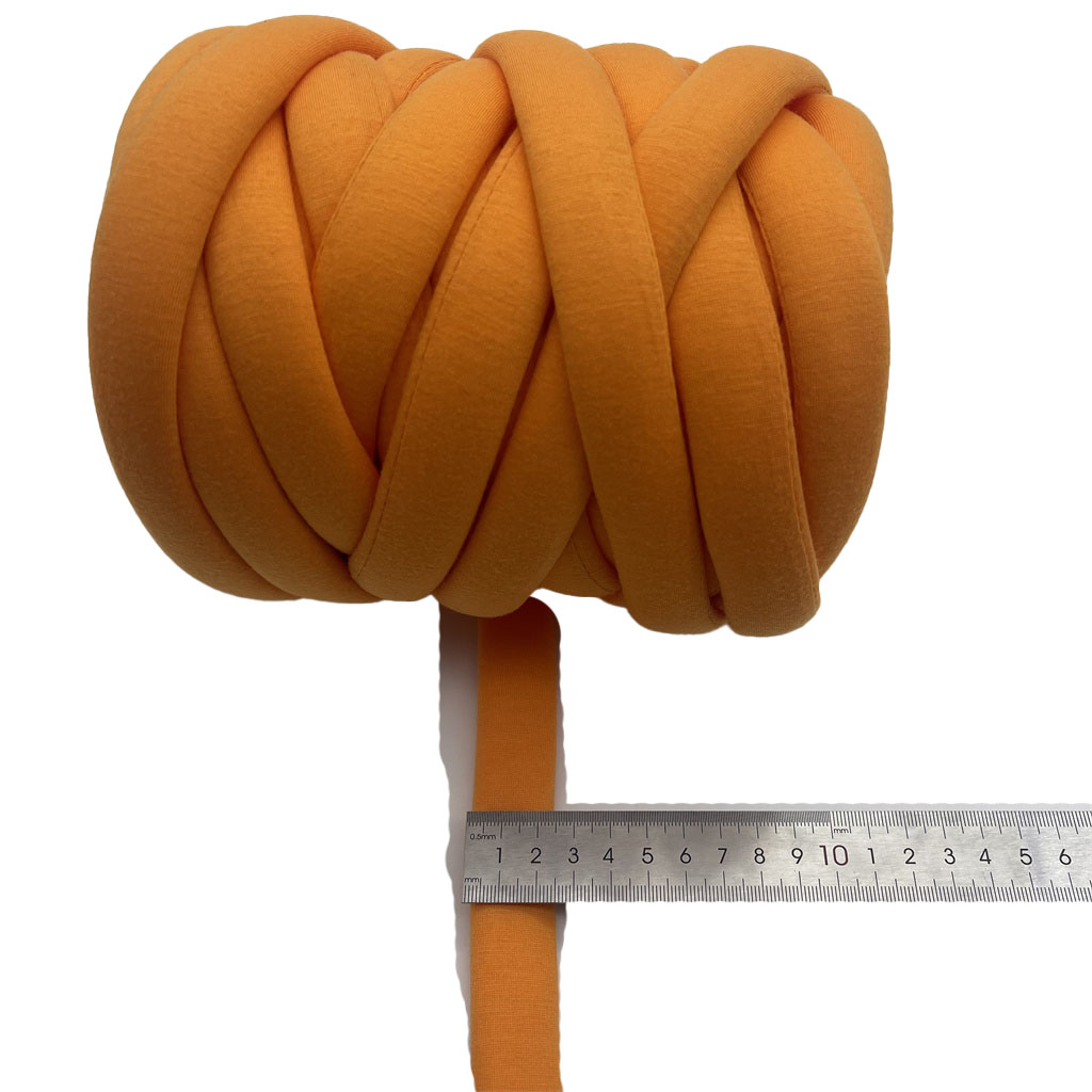 Este producto es un hilo para alfombras voluminoso, suministrado al por mayor, diseñado para aplicaciones de tapicería. El hilo está construido como un tubo continuo con un diámetro definido de 2 cm, creando una forma tridimensional sustancial. Su composición es una mezcla de poliéster y algodón, lo que contribuye a la durabilidad del material y a sus cualidades táctiles específicas. La estructura tubular proporciona resiliencia y recuperación de la compresión, una característica funcional para su uso en la fabricación de muebles y cojines. Esta construcción permite una cobertura eficiente en el proceso de tapizado, contribuyendo a la creación de superficies texturizadas profundas en los productos terminados. Los parámetros del hilo lo hacen aplicable para proyectos que requieren un tejido voluminoso con un perfil definido.