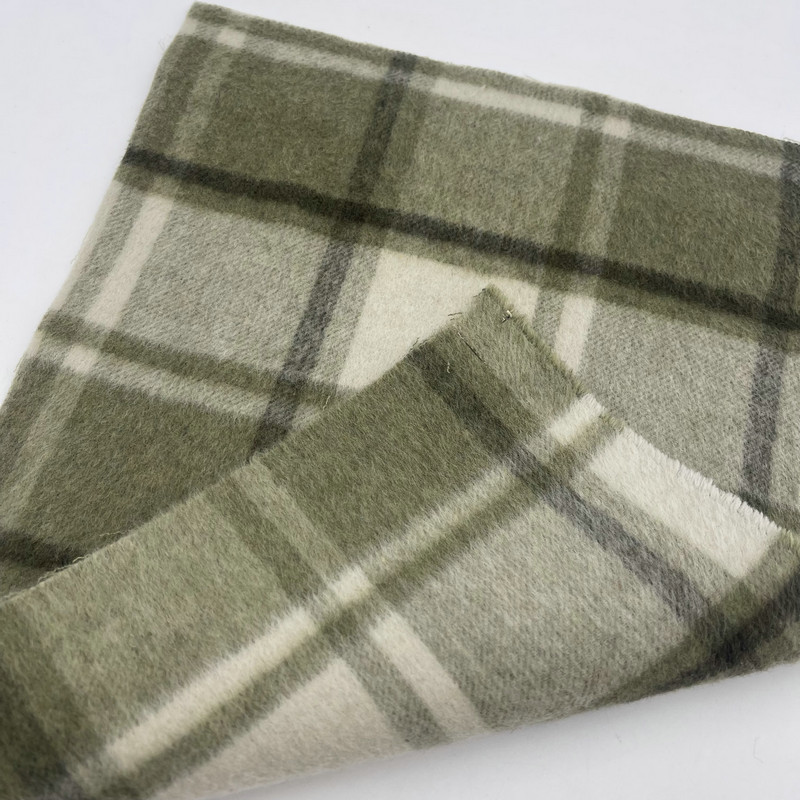 Este tejido, denominado artículo ZZH25001, es un tejido grueso compuesto por un 30% de lana y un 70% de otras fibras. Con una masa por unidad de área de 900 g/m3, el material exhibe una densidad y un peso sustanciales. La superficie presenta un patrón de cuadros verdes con un efecto de sombra creado mediante técnicas de tejido especializadas. Este método de construcción produce profundidad visual en capas dentro de la formación de la cuadrícula. La inclusión de fibras de lana en la mezcla influye en las propiedades de regulación térmica del tejido. Estas especificaciones técnicas dan como resultado un tejido pesado adecuado para prendas estructuradas donde se requiere una textura pronunciada y una presencia sustancial.