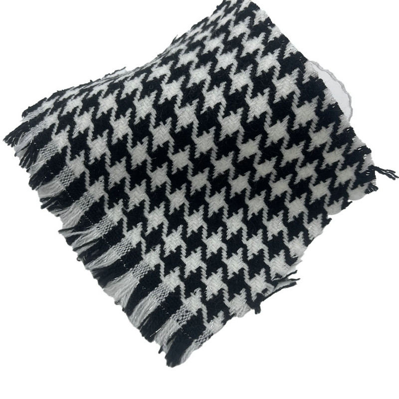 Este tejido es un tejido jacquard tweed compuesto por 97% acrílico y 3% hilo de plata, con una masa por unidad de superficie de 250 gsm. Presenta un patrón de pata de gallo en blanco y negro integrado con elementos metálicos durante el proceso de tejido jacquard. La base acrílica proporciona consistencia estructural y retención de color, mientras que el hilo plateado introduce propiedades reflectantes de la luz en el patrón. Esta construcción crea un tejido con motivos geométricos definidos y contraste de superficie. El peso y la composición especificados contribuyen a la durabilidad del material y a la facilidad de mantenimiento. Estas características técnicas hacen que este tweed jacquard sea aplicable para proyectos de tapicería donde se requiere visibilidad del patrón y rendimiento funcional.