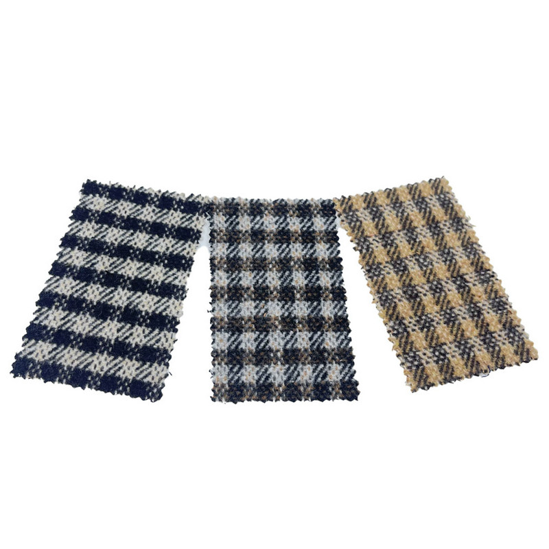 Este tejido, denominado artículo 3811, es un tejido de tweed compuesto por un 10% de lana y un 90% de otras fibras. Con una masa por unidad de superficie de 550 g/m2, presenta una construcción pesada. La superficie marrón presenta un patrón de cuadros integrado en una base de tejido de sarga, creando líneas diagonales debajo de la formación de cuadrícula. Se aplicó un acabado de cepillado a la tela, levantando las fibras para crear una textura superficial suavizada. Esta técnica altera las propiedades táctiles del tejido manteniendo la integridad estructural del tejido de sarga. Las especificaciones técnicas dan como resultado un material con una definición de patrón visual combinada y una sensación de superficie mejorada, lo que lo hace aplicable para la fabricación de abrigos donde se requieren durabilidad y comodidad táctil.